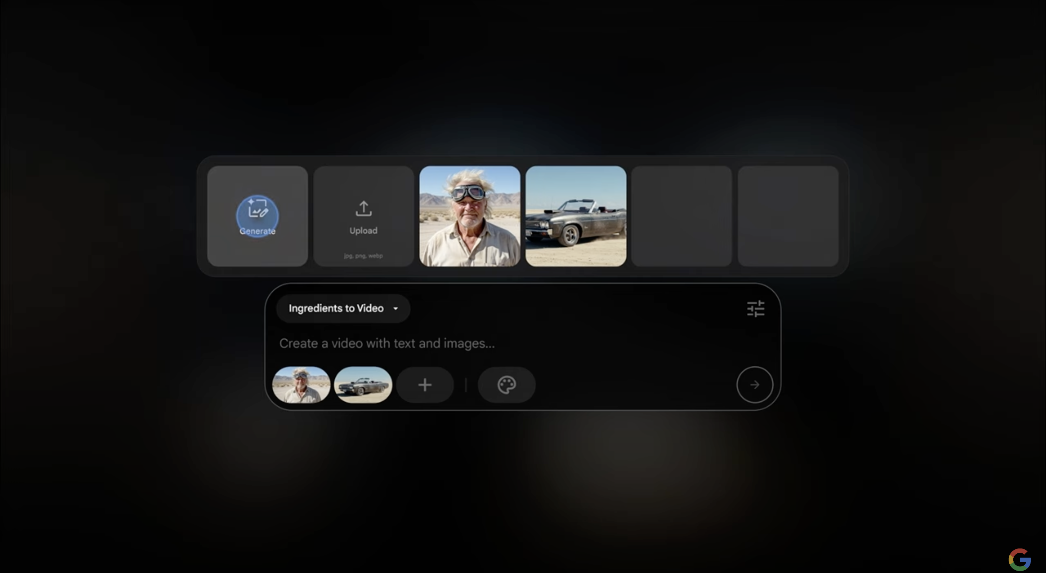 Flow는 Veo, Imagen, Gemini의 장점이 결합된 새로운 AI 영상 제작 도구입니다. 사용자가 이미지를 업로드하거나 내장된 Imagen으로 이미지를 생성하고, 이 모든 요소를 조합하여 프롬프트 하나로 클립을 만듭니다.